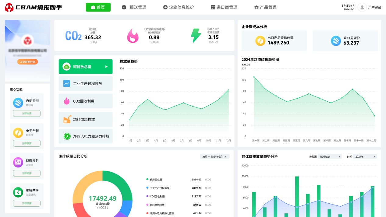 2023年10月1日起,歐盟碳邊境調(diào)整機制(CBAM)已進入過渡期,CBAM涵蓋范圍的出口產(chǎn)品需按時提交產(chǎn)品碳排放報告,未提交報告的企業(yè)將面臨高額處罰。為解決企業(yè)由于官方政策文件理解難度大,專業(yè)門檻高,數(shù)據(jù)搜集難度大,部分數(shù)據(jù)缺失無法填等困擾,推出碳關稅管理平臺(CBAM填報助手),通過數(shù)字化方式,為企業(yè)提供碳數(shù)據(jù)填報、碳數(shù)據(jù)核算、碳數(shù)據(jù)報送、碳數(shù)據(jù)認證、咨詢培訓等全流程服務??蓸O大減少企業(yè)碳排放報送門檻,助力企業(yè)低成本合規(guī)報送碳排放數(shù)據(jù)。